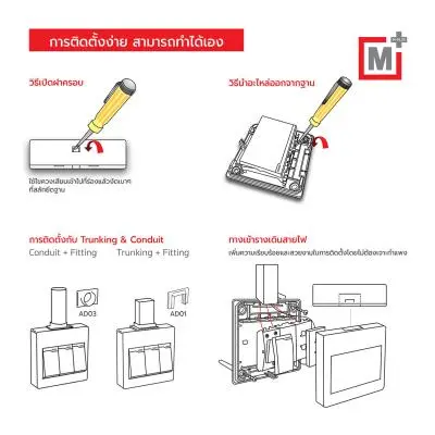 • สวิตช์รองรับกระแสไฟ 16A (มาตรฐาน มอก.824-2551)