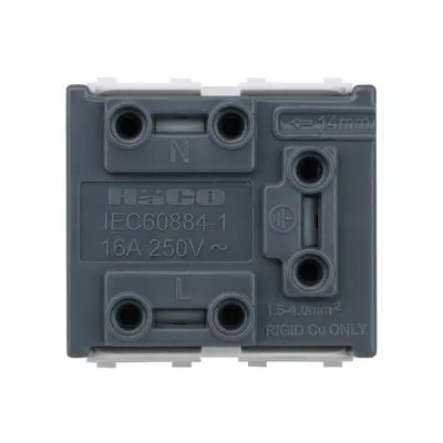 - เต้ารับ 3 ขาเดี่ยว พร้อมม่านนิรภัย ใช้ร่วมกับสวิตช์หรือเต้ารับ “PRIMO Series” แบรนด์ HACO