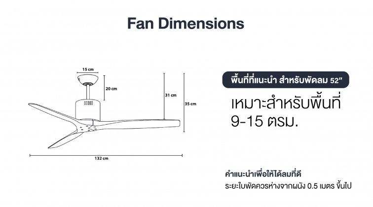 ขนาดพัดลม:        52 “